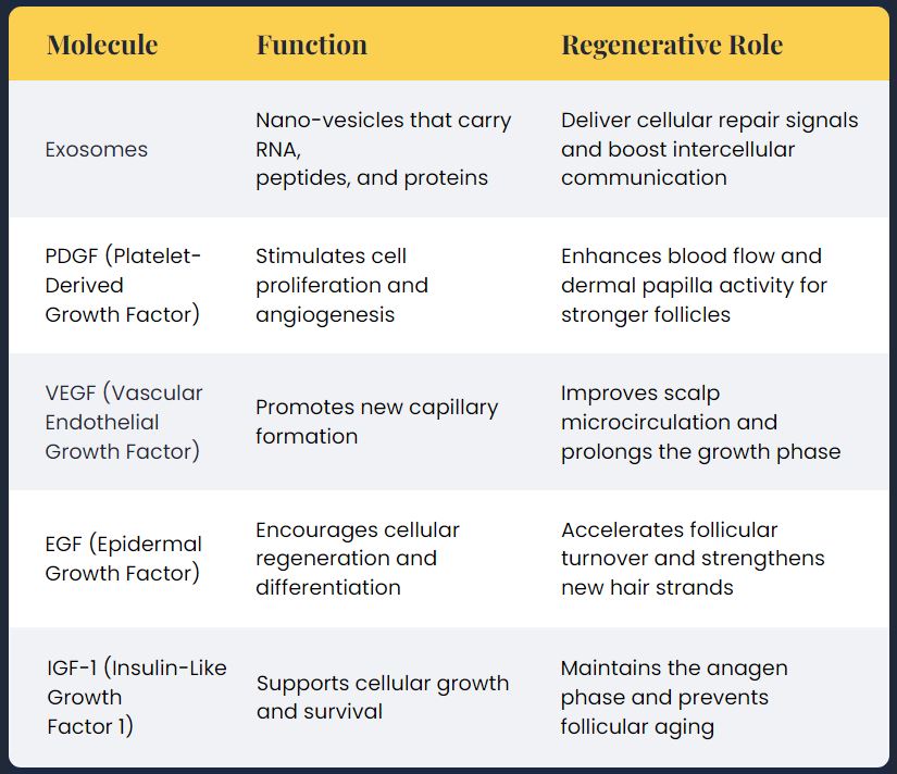 Secretome Therapy is something truly extraordinary — a treatment created from the stem cells of your own harvested hair follicles. Think of it as a bio-coded message sent from your younger self to your scalp — whispering: regrow, repair, restore.